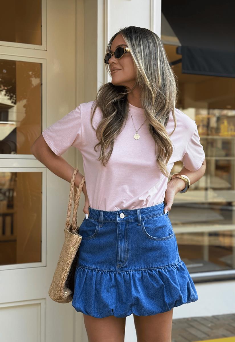 Suavidade e estilo em uma só peça. A T-shirt rosa claro 100% algodão é leve, confortável e versátil, perfeita para compor desde combinações casuais até produções mais delicadas. Um clássico repaginado que traz frescor e modernidade para o seu guarda-roupa.