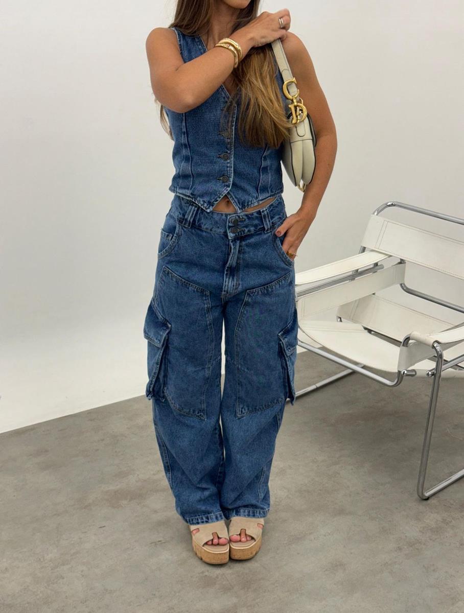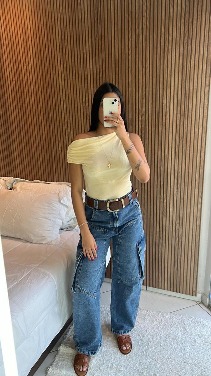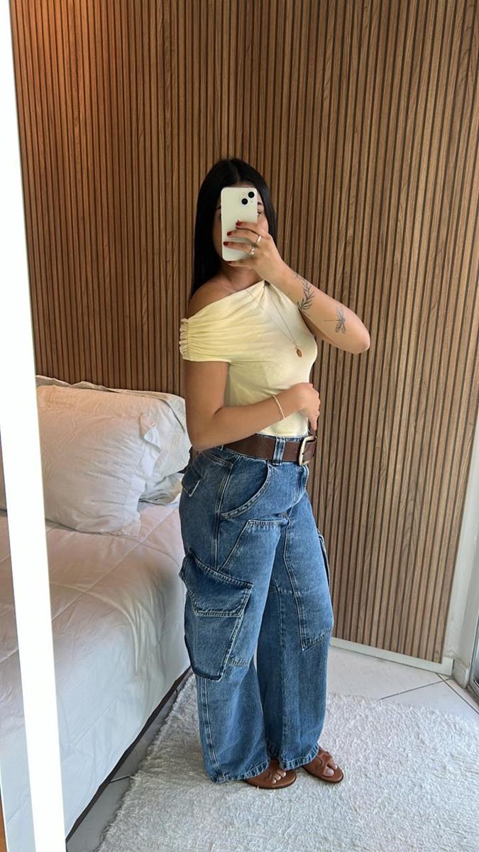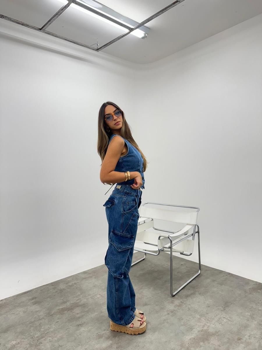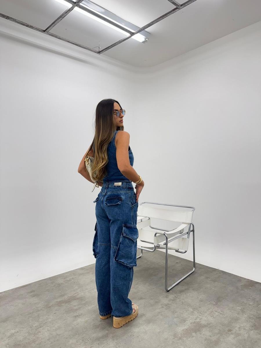 Renovamos a calça cargo! A Calça Indie chegou com uma proposta mais despojada, modelagem cargo, com maxi bolsos, recortes, e cintura alta. Combine com top jeans ou blusa soltinha e muitos acessórios.