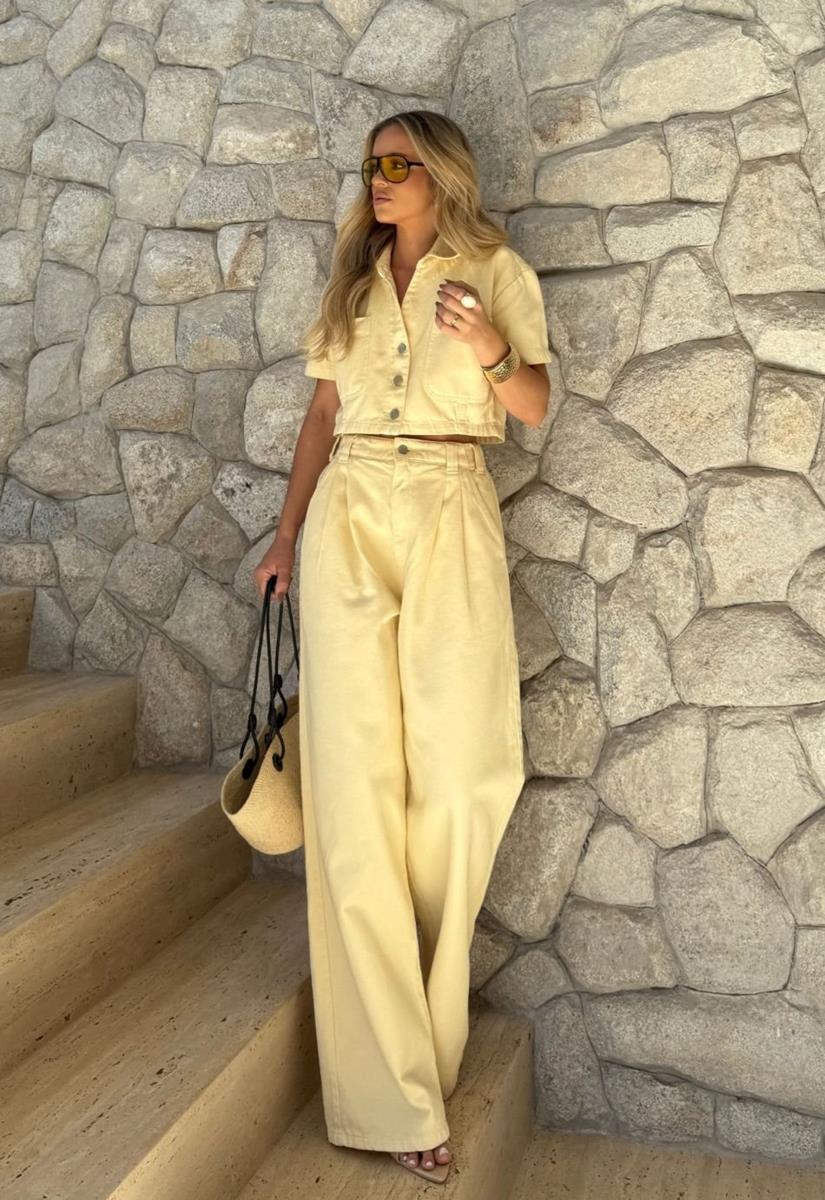 A Pantalona Azzurra, perfeita para quem busca estilo aliado ao conforto. O modelo possui cintura alta que valoriza a silhueta, além de pregas frontais sutis que acrescentam sofisticação e um caimento mais soltinho. Versátil, pode ser combinada com cropped, camisas ou até blazers, transitando facilmente entre produções casuais e fashionistas.