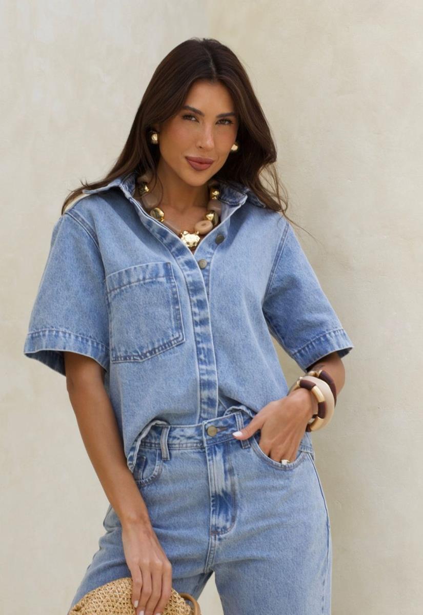 ESPECIFICAÇÃO DO PRODUTO Camisa Feminina Fechamento com botão 100% ALGODÃO Tecido Jeans Marca ALCANCE JEANS Modelo veste tamanho P/36 A lavagem da peça pode sofrer alteração de acordo com a edição da foto.