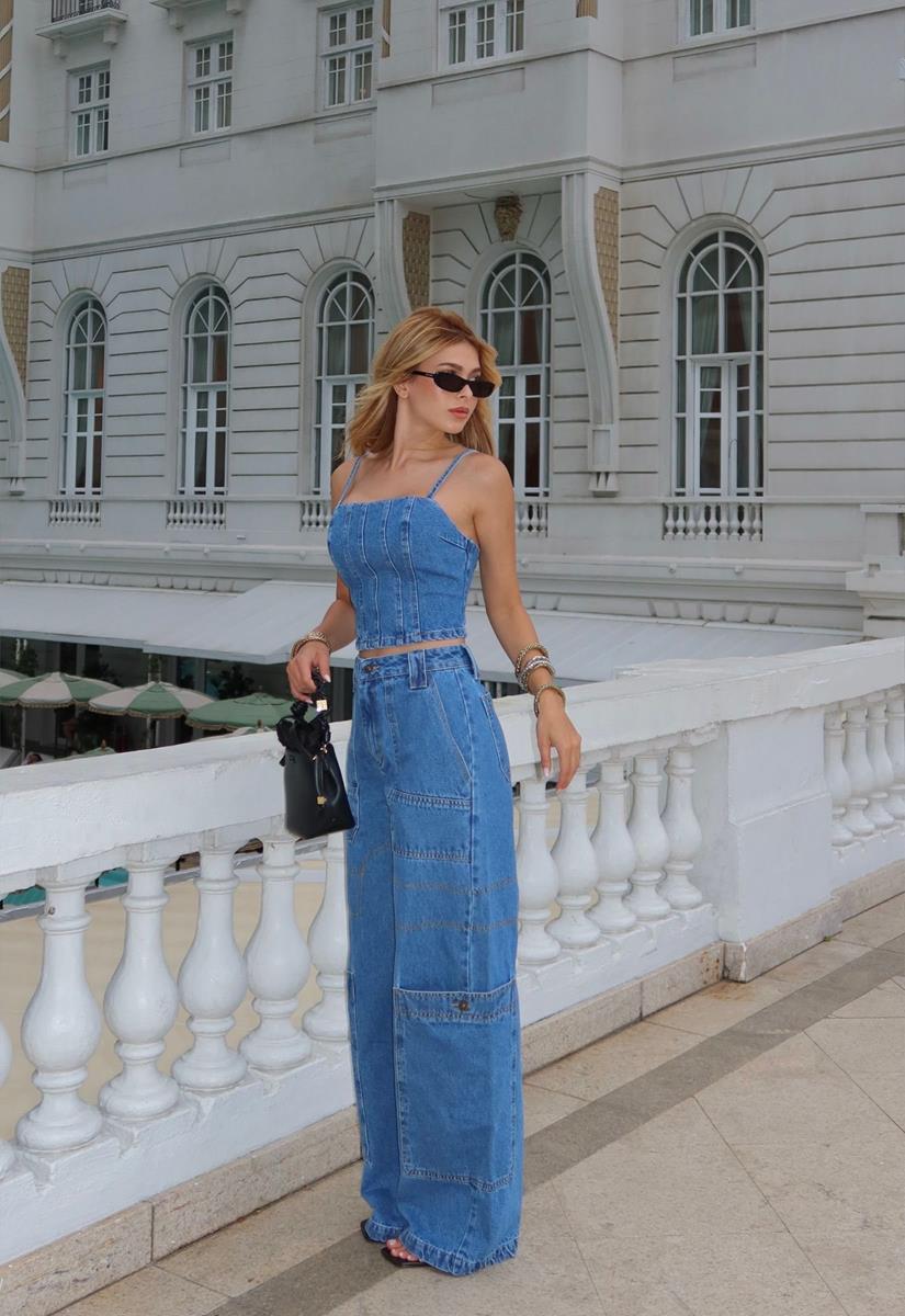 Renovamos a pantalona! A Calça Gaia chegou com uma prosposta mais despojada, modelagem soltinha, com maxi bolsos e cintura média. Combine com top jeans ou blusa soltinha e muitos acessórios.